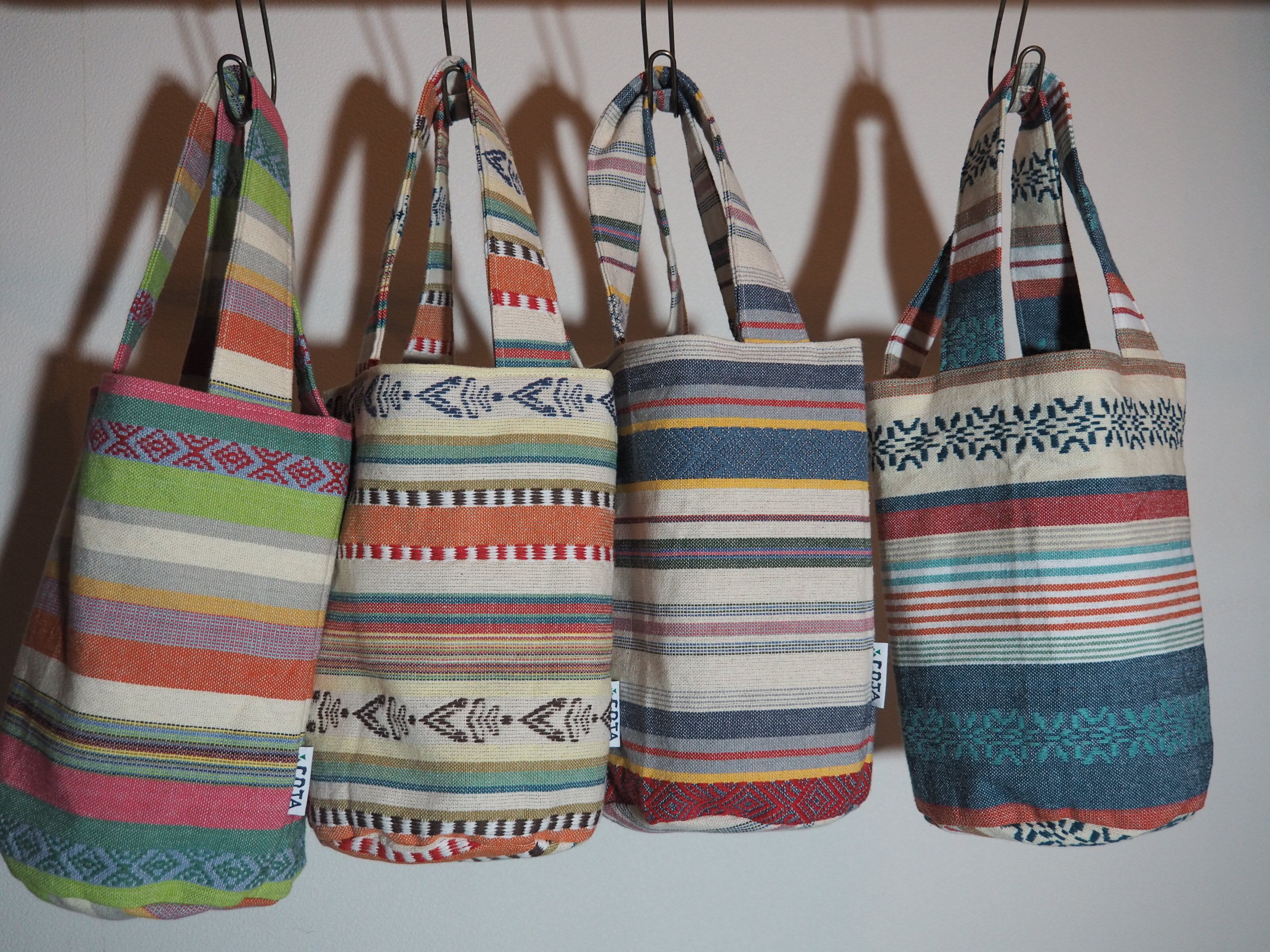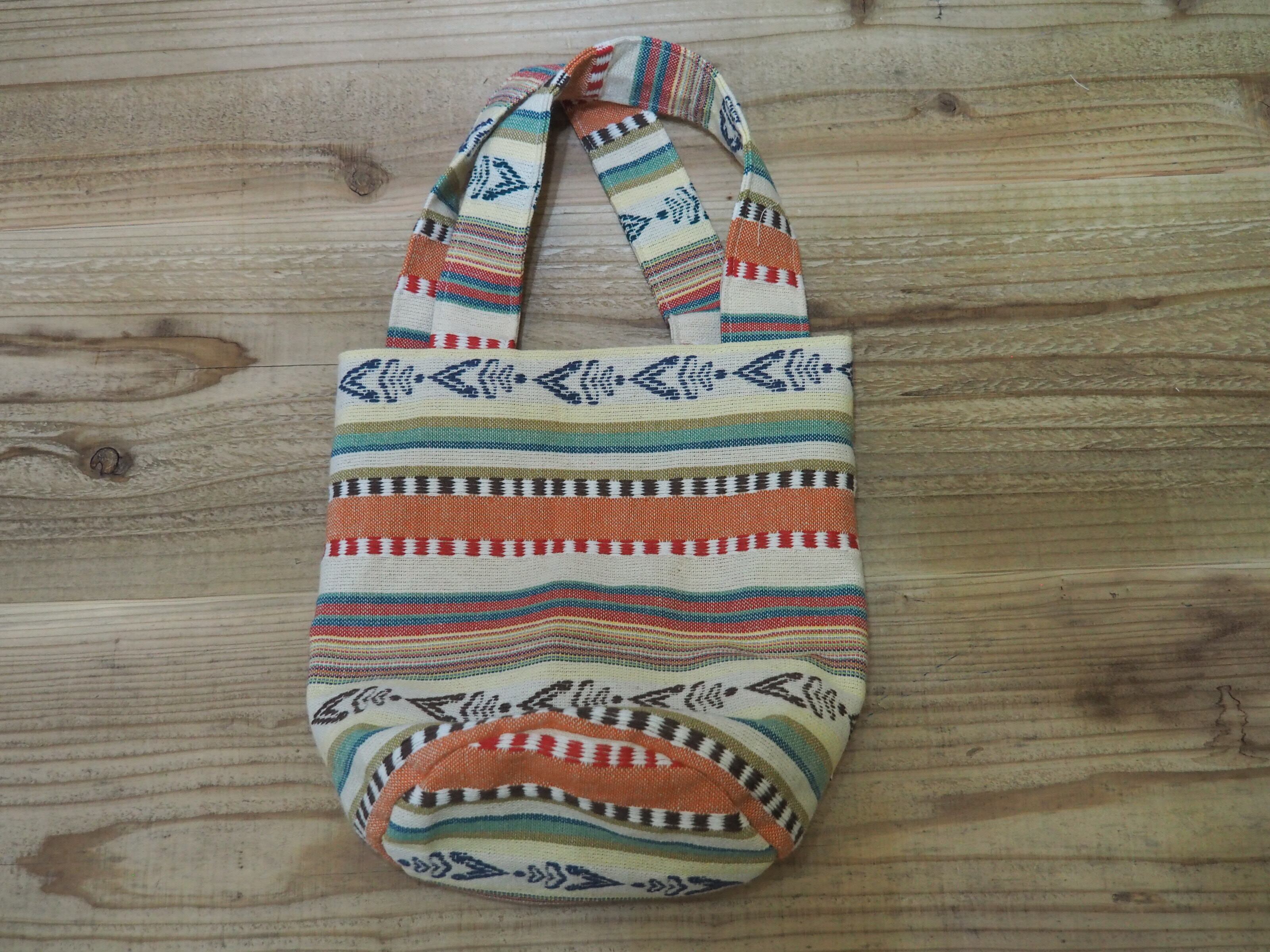 こちらはインド綿のドビー生地で作った、小さ目なバケツバッグです。
