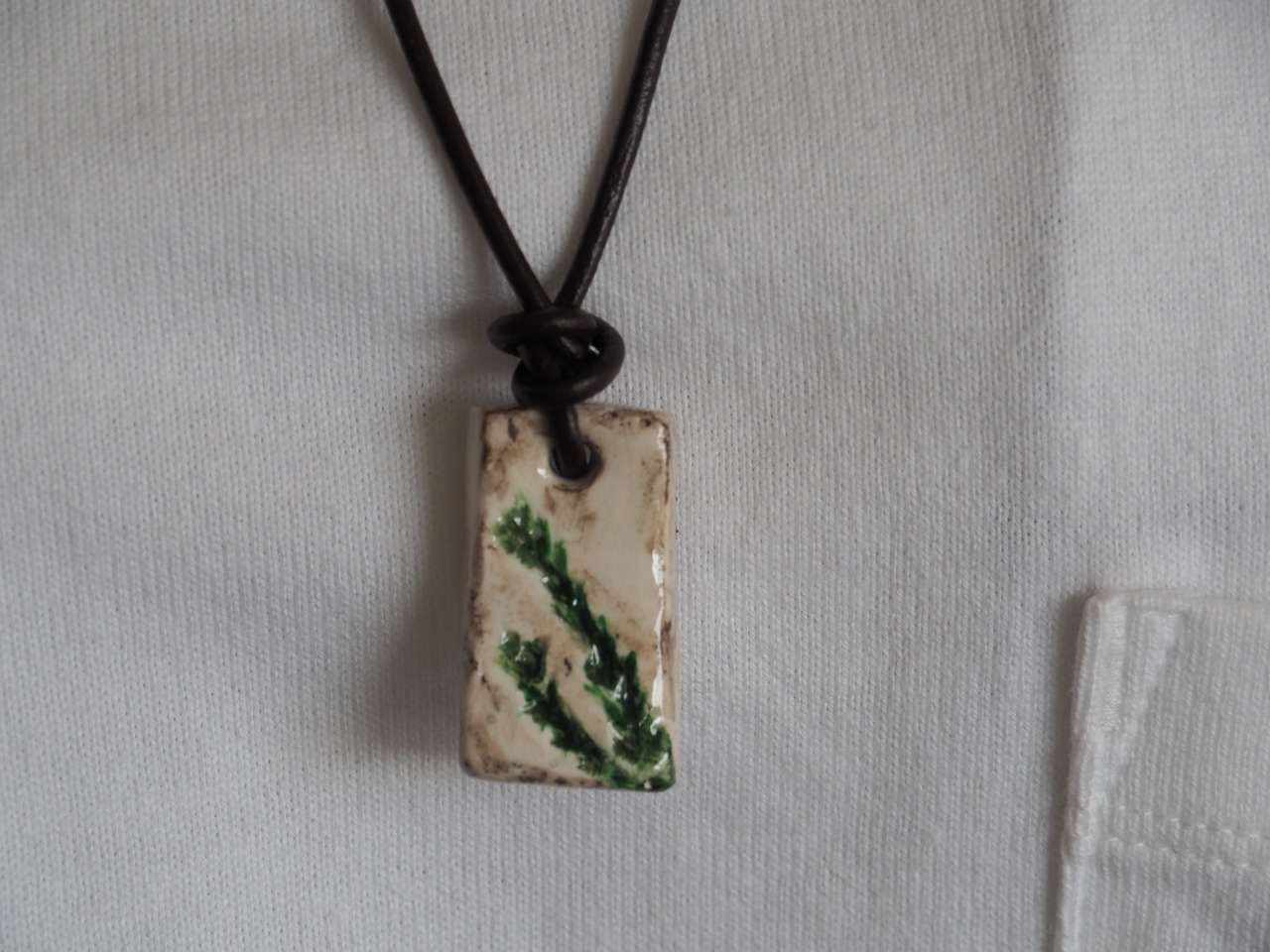 石塑粘土を使って陶器のような質感のペンダントを作りました。