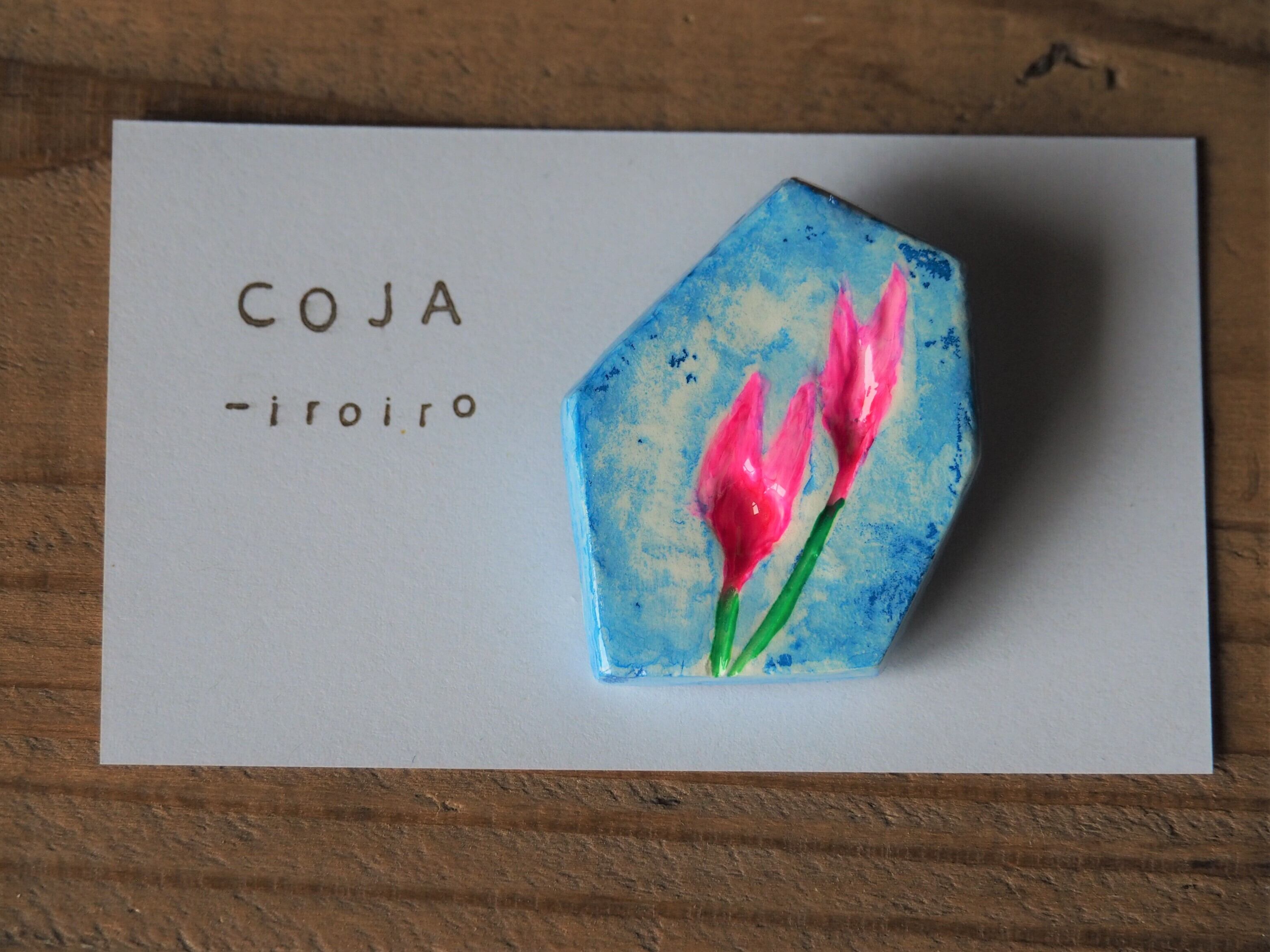 石塑粘土を使って陶器のような質感のブローチを作りました。