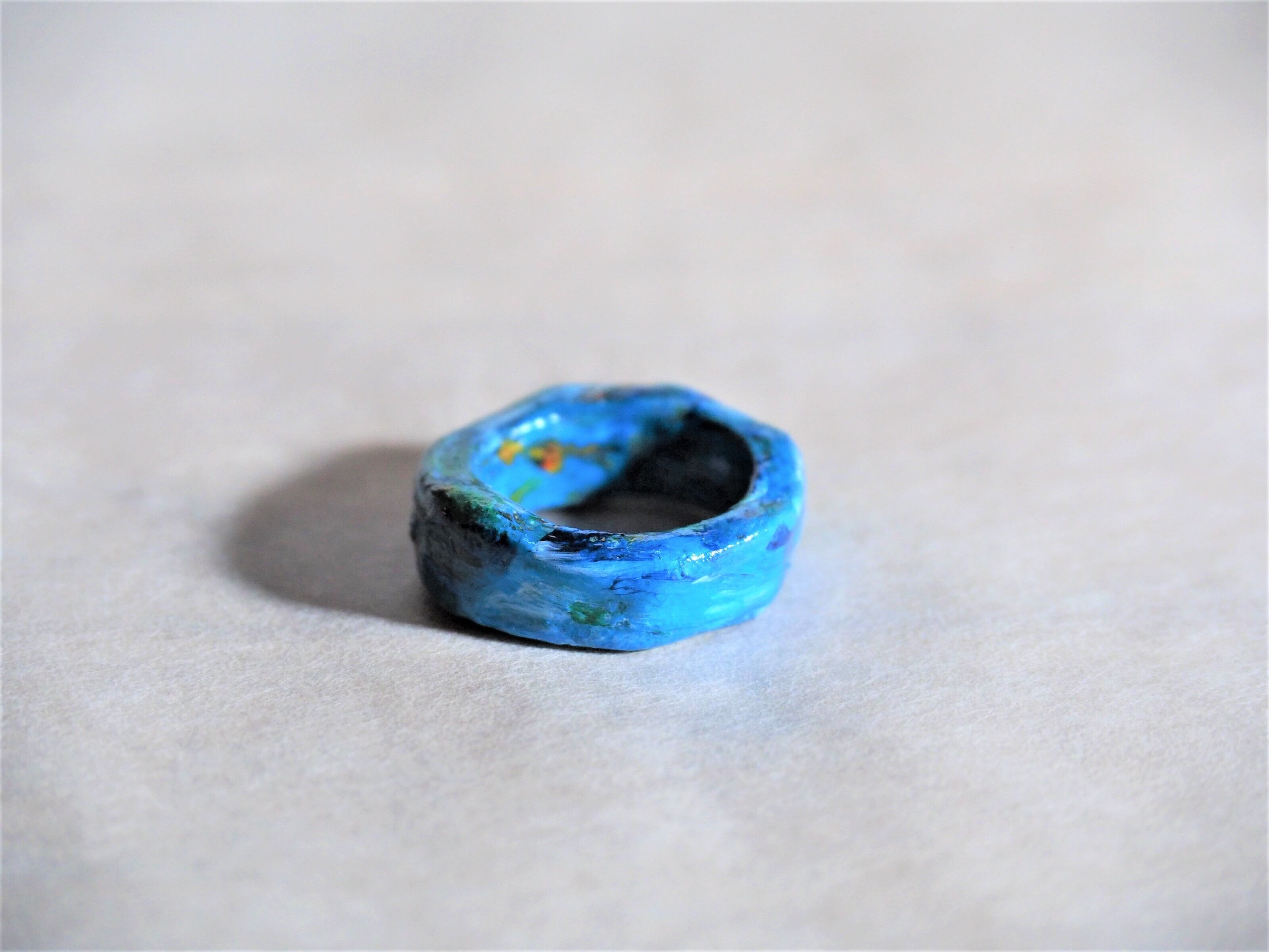 こちらの「Earth 地球色の指輪」は石塑粘土で作成いたしました。