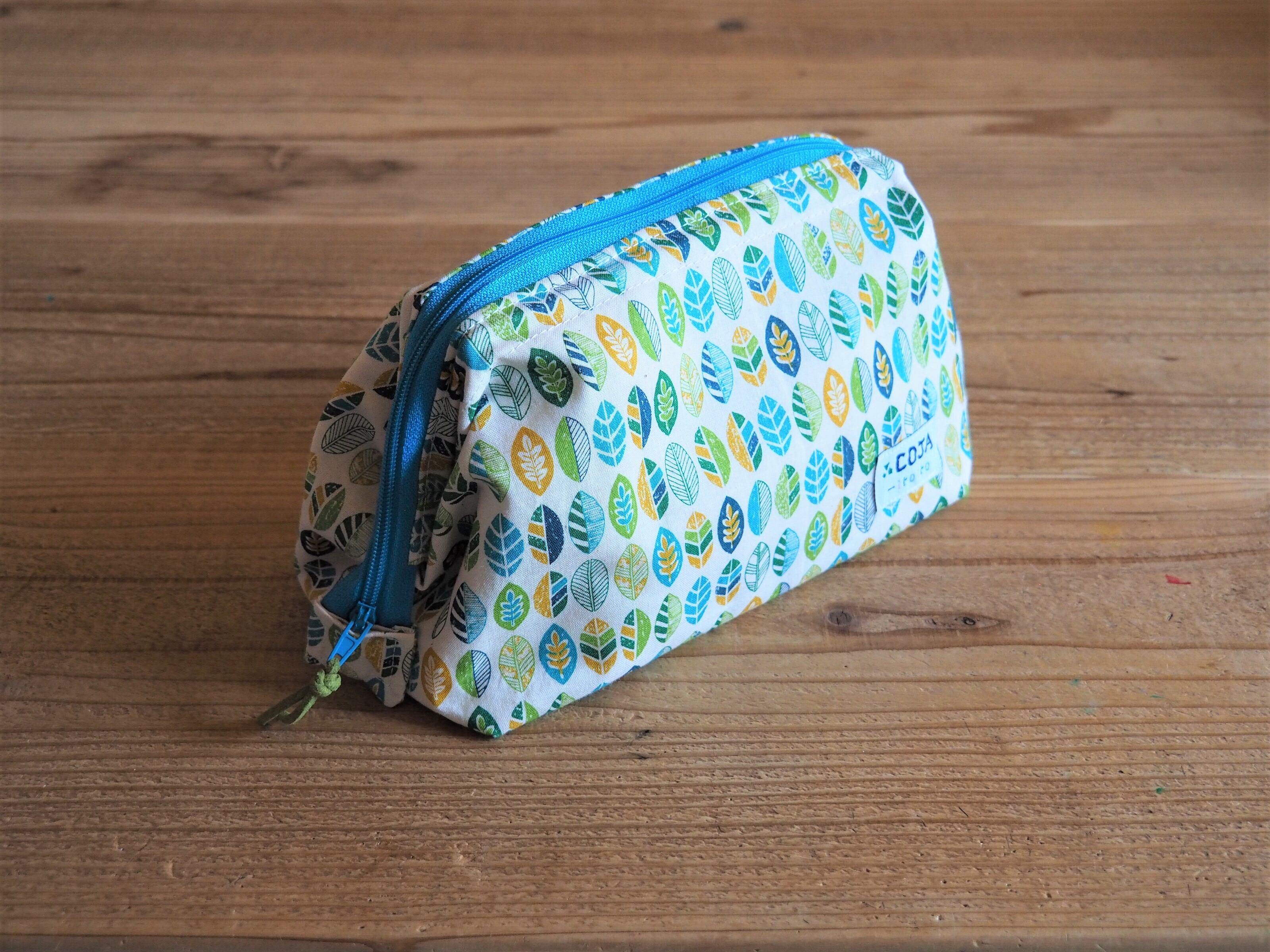 ガバッと開くワイヤーポーチ 緑 葉っぱ